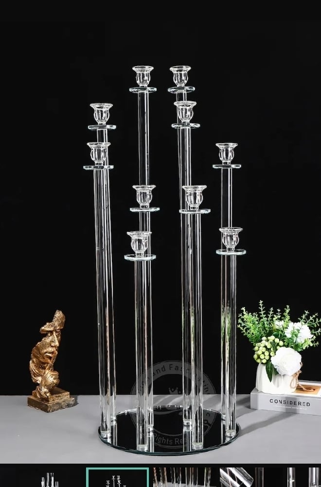 48” Tall 10 Arms Clear Crystal Glass Candle Holders ,Champagne clear Candelabra for rent only