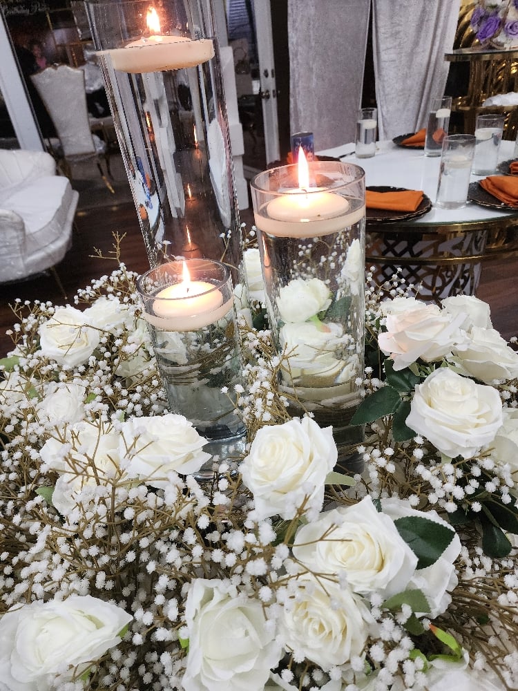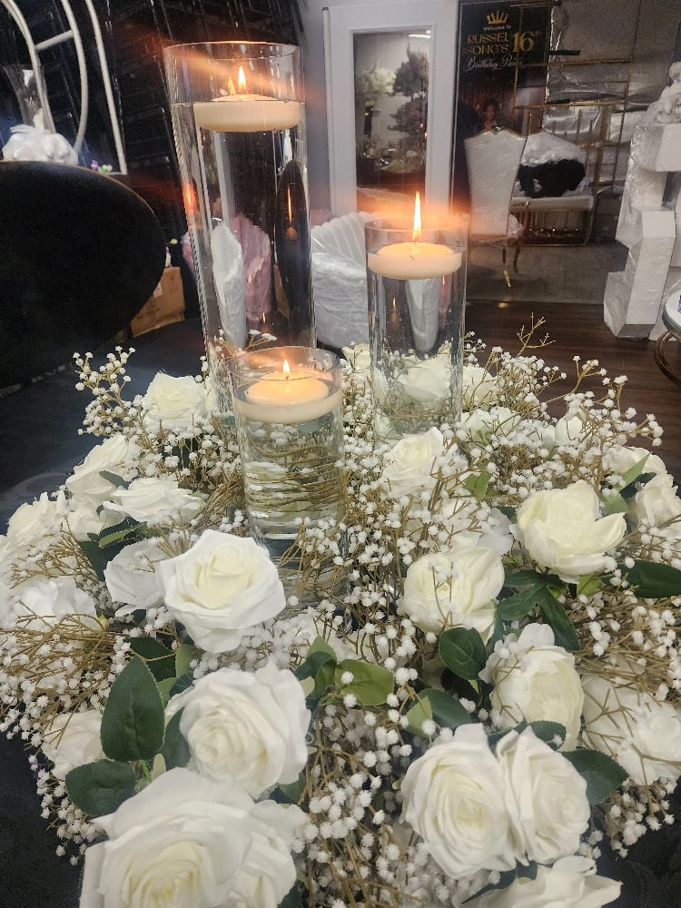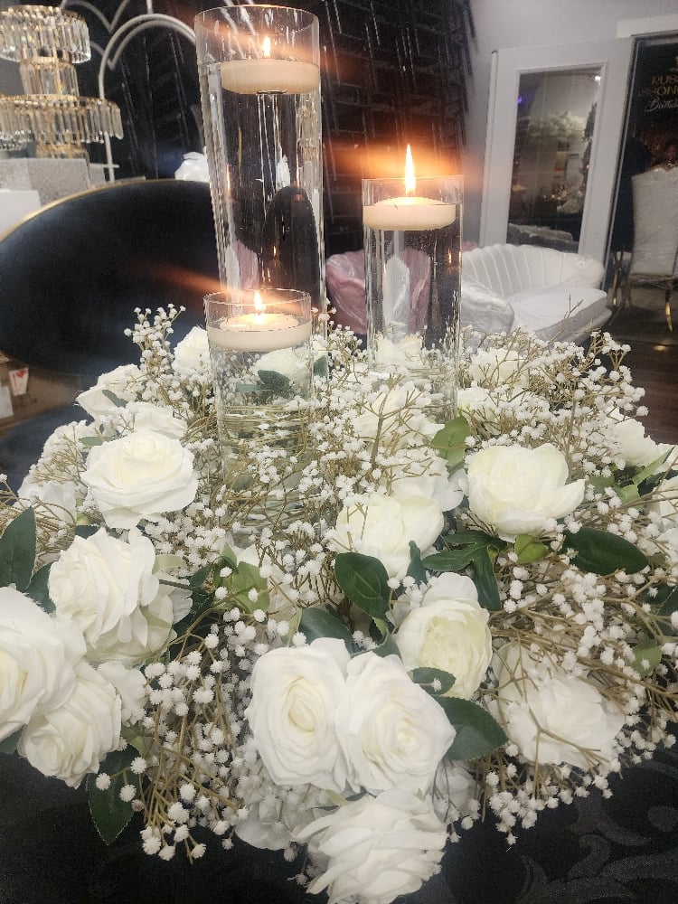 80 cm baby breath Flower Ring mix with white roses with cylinder vase 24in,18in,16in$5 each set