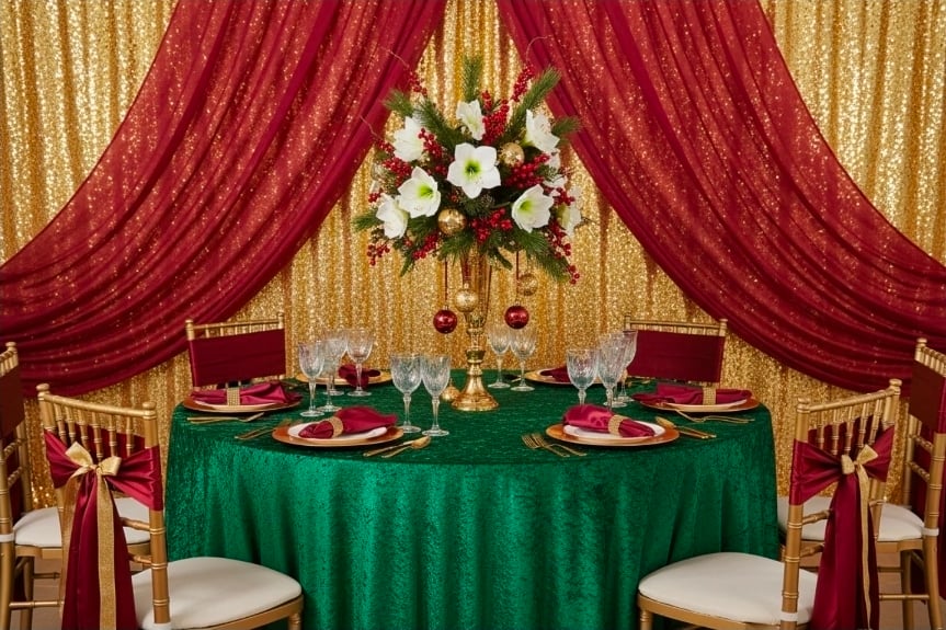 Velvet 120" Round Tablecloth - Forest Green